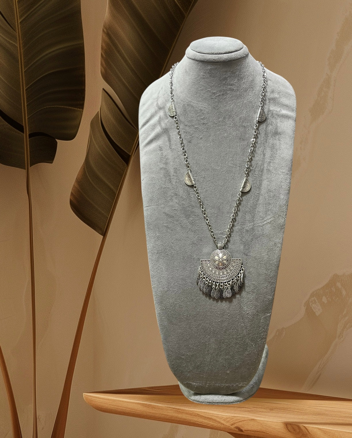 Long silver plated necklace