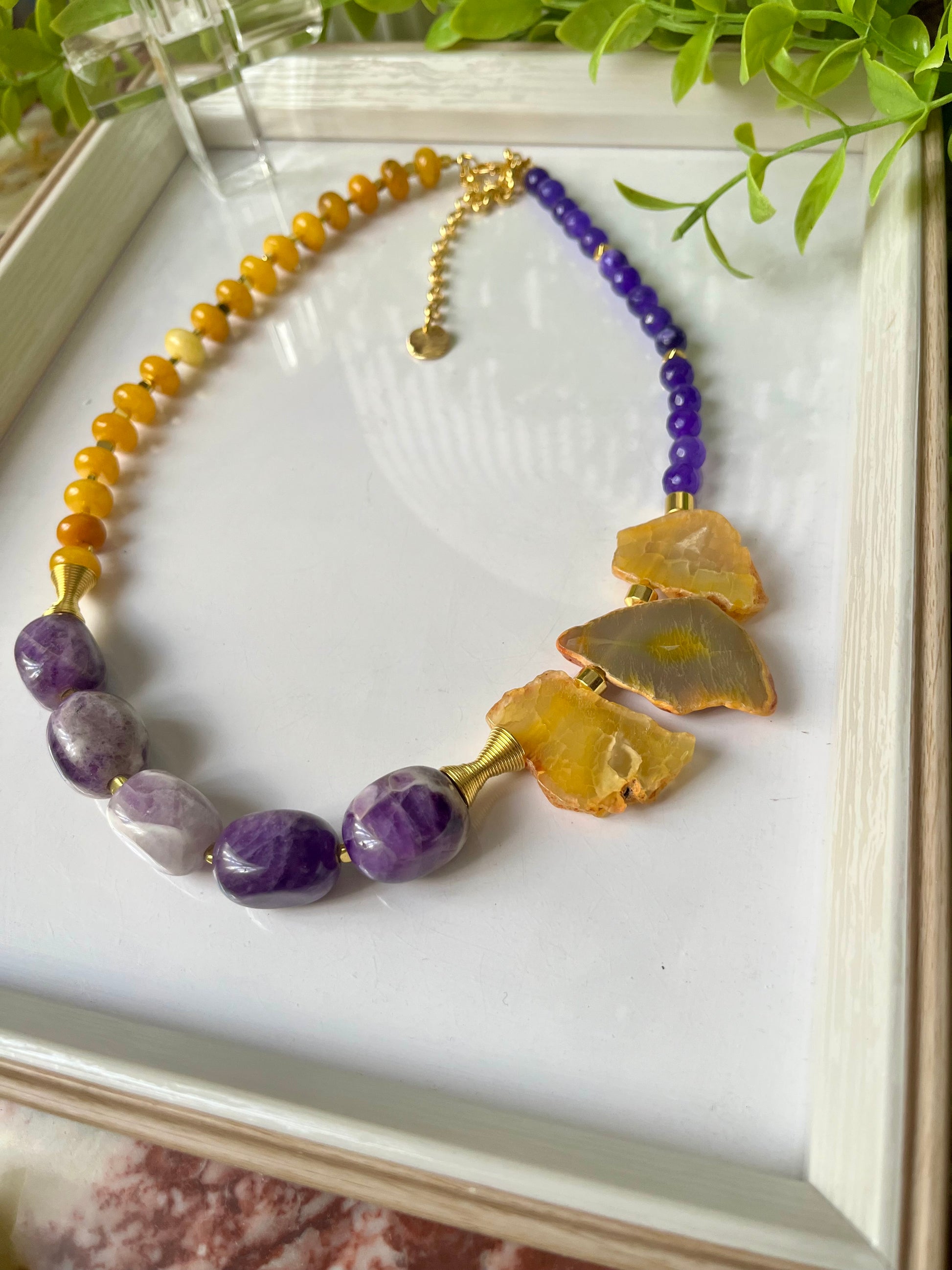 Amitist stones with a touch of irregular agate stone with gold plated separators and ends
