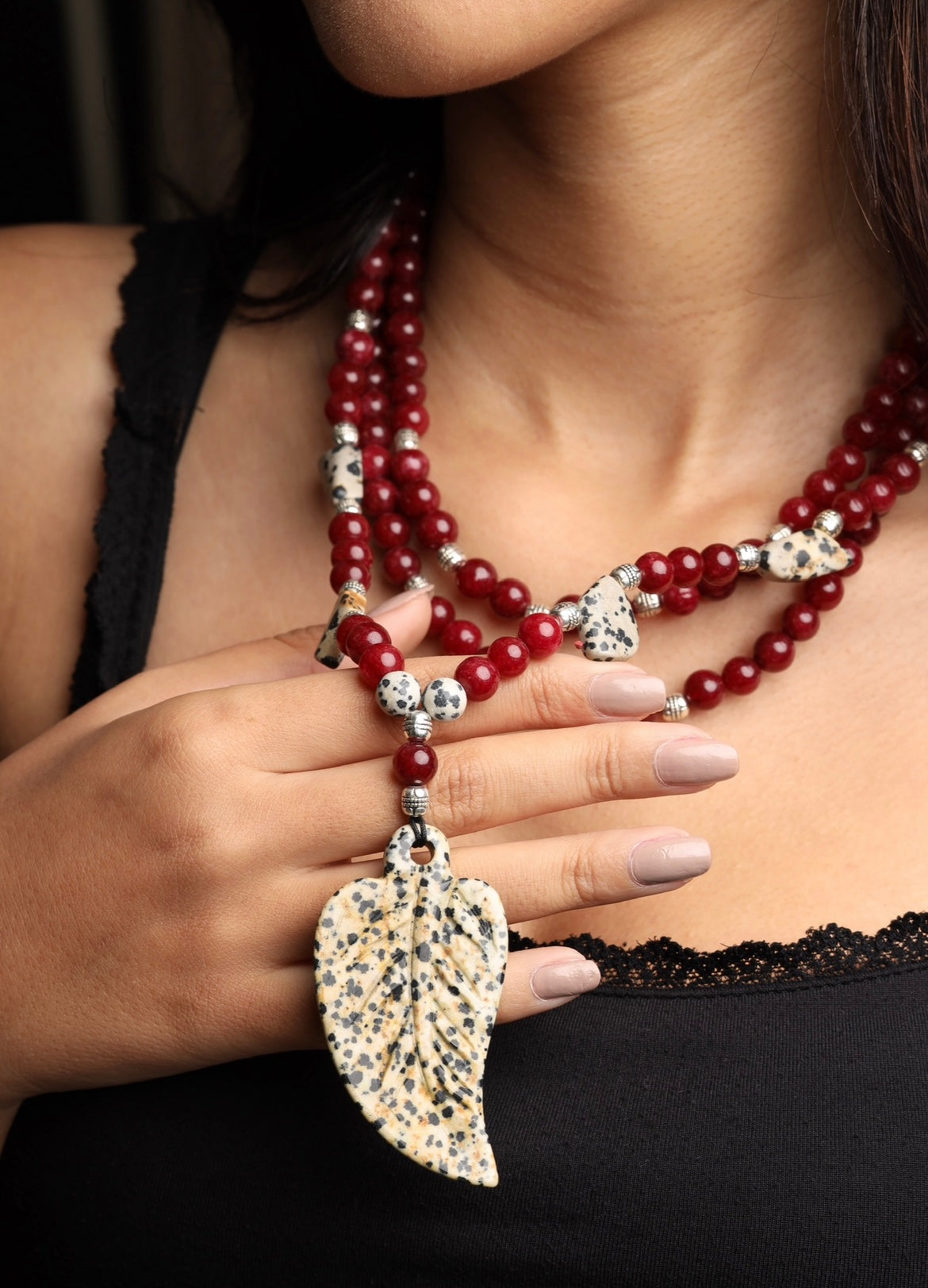 Salvation jasper with ruby stones in a unique design